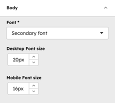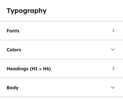 - Typography: Complete control over your text. Here you can set specific font overrides for headings and body copy, including font families, colors, responsive sizes, and line heights.