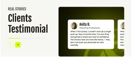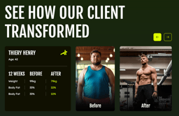 - Interactive Client Stories: Effortlessly create multiple testimonial cards using a repeater field. Each card supports a high-quality client portrait, their personal transformation story, and detailed member information.