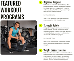 - Goal-Oriented Lists: Add multiple benefit or feature points for each class, such as "Progressive overload based workouts," highlighted with vibrant star icons.