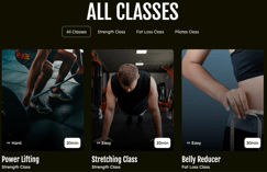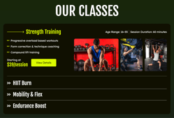 - Each class item includes a dedicated "Get Started" button, allowing you to link users directly to a booking calendar or registration form for that specific session.