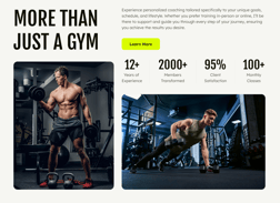 - Social Proof Avatar Repeater: Highlight the size of your team by adding multiple trainer avatars in a stacked layout. This section includes a customizable counter avatar number to emphasize your facility's extensive coaching resources.