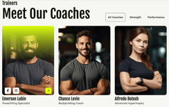 - High-Quality Portraits: Feature professional images of each trainer.