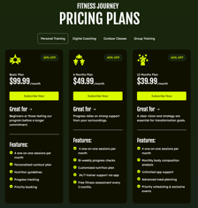 - Starting Price: Feature a clear "Starting at" price point to provide immediate transparency to prospective members.